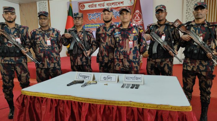 চাঁপাইনবাবগঞ্জে ৫৩ বিজিবি’র অভিযানে ০২টি বিদেশী পিস্তল, ০৪ টি ম্যাগজিন ও গুলি ৩ রাউন্ড জব্দ
